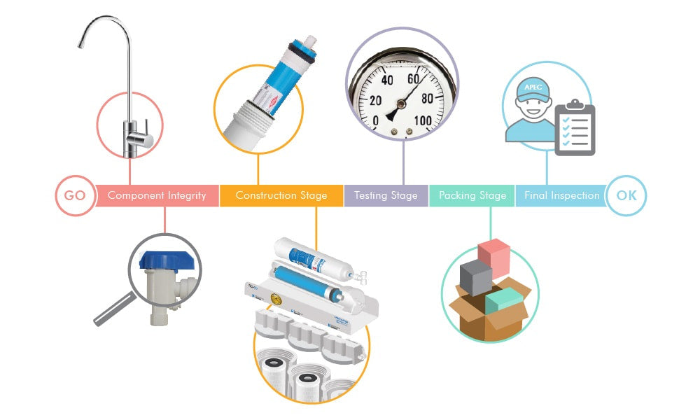APEC has 20 years of successful experience in creating the finest water filtration systems from our California facility. All APEC reverse osmosis systems are designed, engineered, and tested in-house using high-quality parts to ensure that a trouble-free system arrives at your door. Our superior engineering, design expertise, and attention to details have earned our products the distinction of being the most durable water-filtration systems on the market.