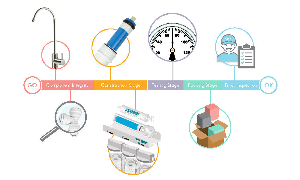 APEC has 20 years of successful experience in creating the finest water filtration systems from our California facility. All APEC reverse osmosis systems are designed, engineered, and tested in-house using high-quality parts to ensure that a trouble-free system arrives at your door. Our superior engineering, design expertise, and attention to details have earned our products the distinction of being the most durable water-filtration systems on the market.